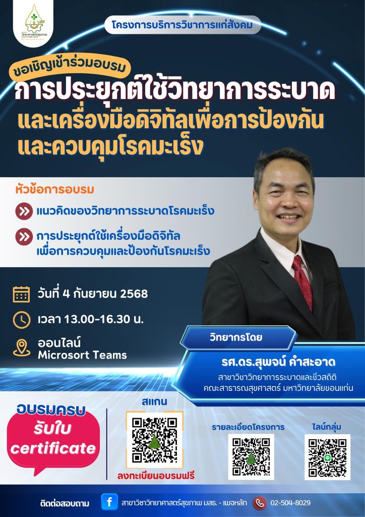 - เพื่อเพิ่มพูนความรู้ ความสามารถและทักษะทางวิชาการและวิชาชีพให้กับบุคลากรสาธารณสุขและผู้ที่เกี่ยวข้อง